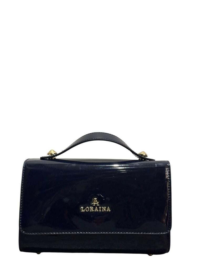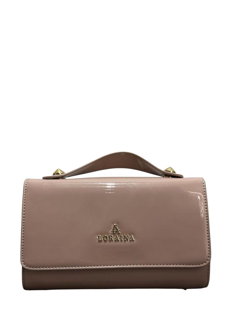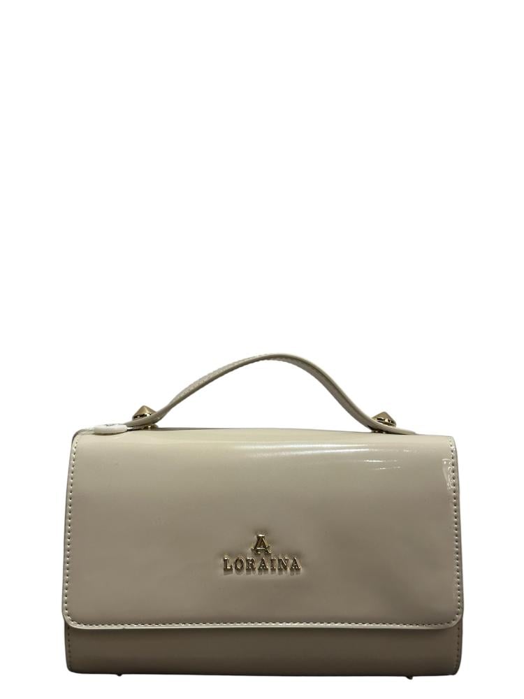شنطة صغيرة أنيقة بتصميم مستطيل فاخر بلمسات معدنية ذهبية وشعار LORAINA البارز، تمنحك مظهر راقٍ بكل بساطة. تصميمها العملي والراقي يجعلها رفيقتك في الحفلات، المناسبات الرسمية، وحتى الطلعات الفخمة.