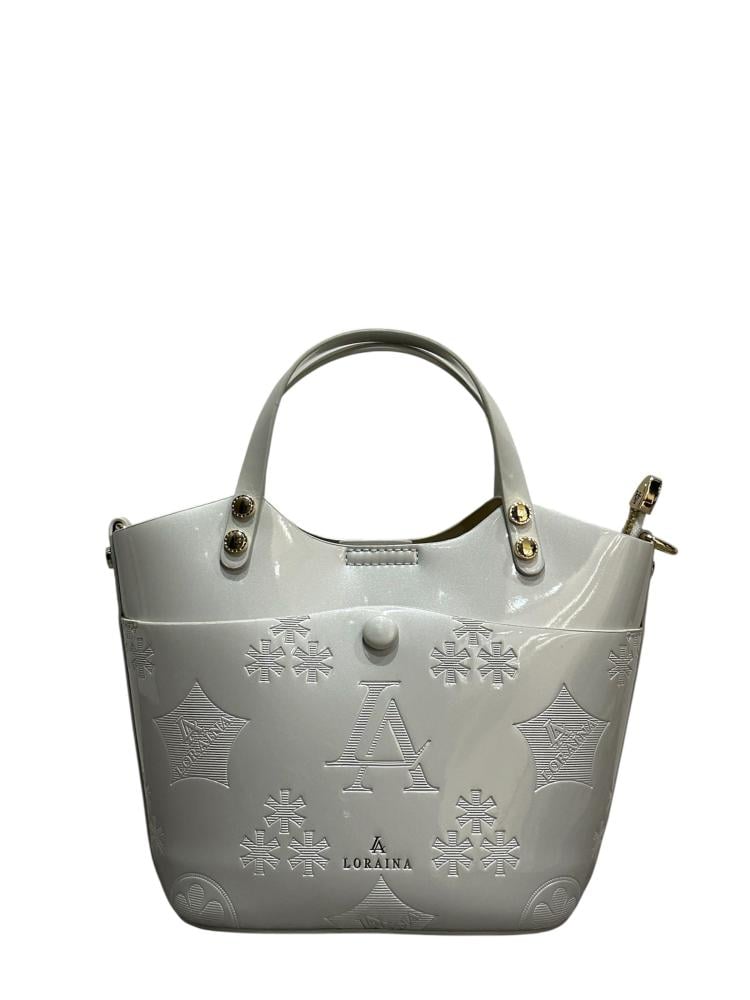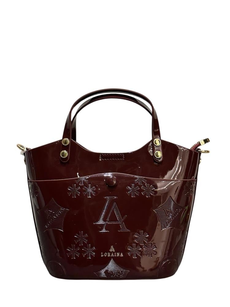 شنطة يد مميزة من ماركة Loraina، بتصميم عصري ولمسة لامعة فاخرة بعدة الوان. تتميز بنقشة بارزة لشعار العلامة تضيف لها طابع جريء وأنيق، مع لمسات معدنية ذهبية على المقابض تعزز من فخامتها.